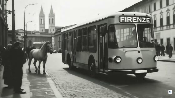 In 1928, the first bus lines were introduced in Florence, marking a revolution in urban mobility and a significant step forward in the transformation of the city's transportation system. The old horse-drawn trams were gradually replaced by modern rubber-wheeled vehicles, ushering in a new era in which the city opened up to new possibilities for movement and connection between different areas. This allowed citizens to enjoy a more efficient, comfortable, and faster system, contributing to an overall improvement in their quality of life.