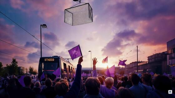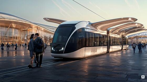 The image represents, through a dreamlike and imaginary evocation, Line 2 of the Florence Tramway, activated in 2015 for which Alstom built the infrastructure (track, contact line, substations, light and motive power, and lighting). The new line provides a quick connection between the city centre and Florence Peretola Airport and significantly improves urban mobility, offering a fast and efficient transport option. The new line also contributes to reducing road traffic, promoting environmental sustainability and facilitating an increase in the number of tourists in the city.
