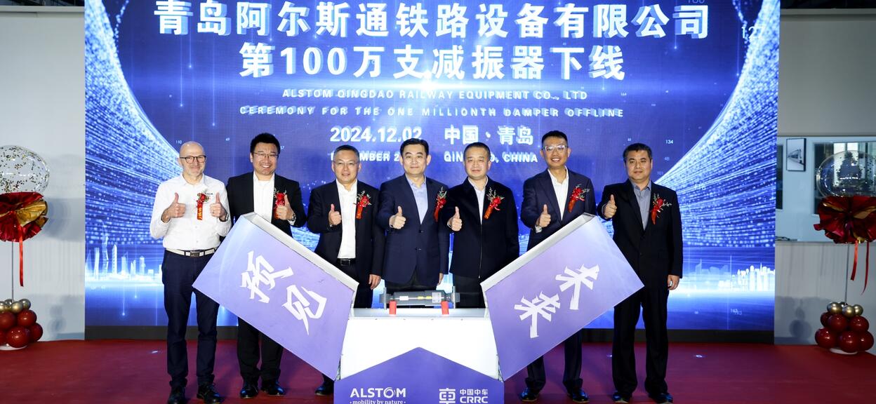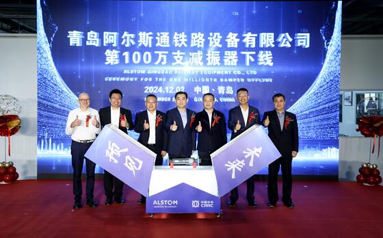 2024年12月2日 – 阿尔斯通在华合资企业——青岛阿尔斯通铁路设备有限公司(DISPEN)[1]在青岛举行了第100万支减振器成功下线暨公司成立25周年庆典活动。合资企业特邀青岛高新区管委领导、中国合作伙伴中车青岛四方车辆研究所领导以及阿尔斯通中国领导团队共同出席揭幕仪式,并见证这一里程碑活动。