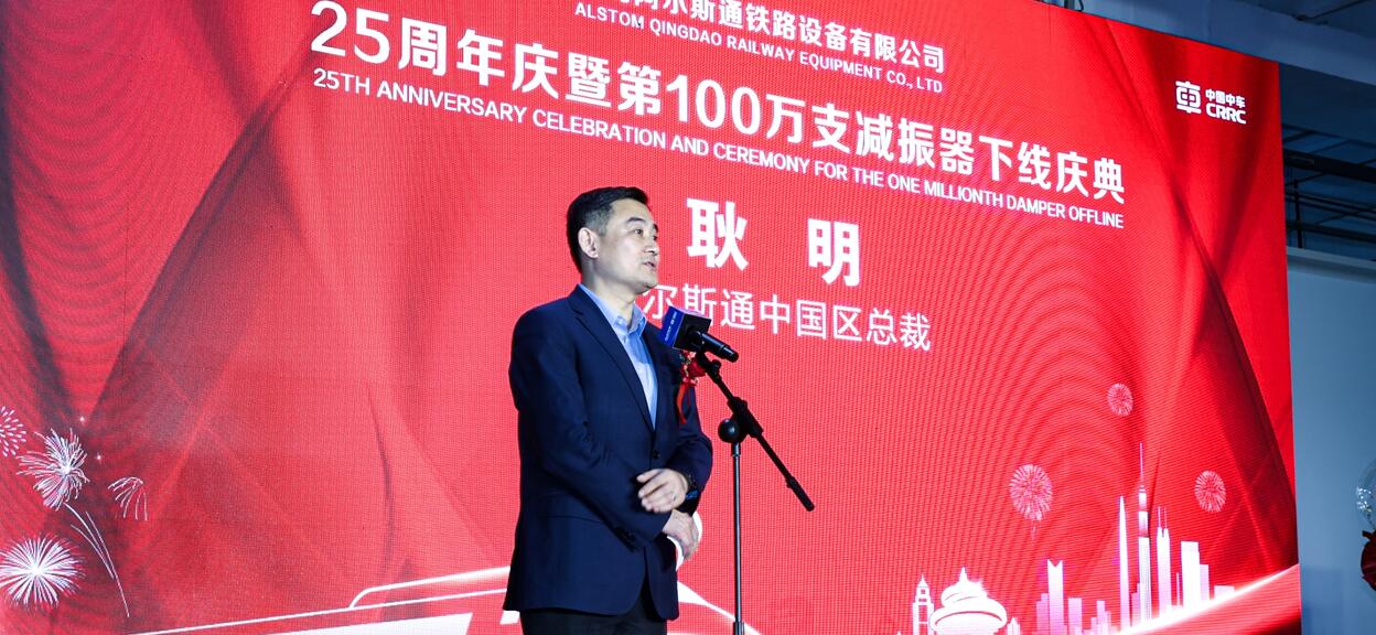 阿尔斯通中国区总裁耿明在现场致辞中表示:“今年是中法建交60周年,也是DISPEN成立25周年。第100万支减振器成功下线,不仅标志着DISPEN>在轨道交通领域又迈出了坚实的一步,也展示了阿尔斯通深耕中国的成果与承诺,非常高兴能见证这一重要时刻。衷心祝贺DISPEN团队凭借不懈的努力,成功达成这一辉煌成就。同时衷心感谢青岛各级政府和中方合作伙伴中车青岛四方车辆研究所的大力支持。”