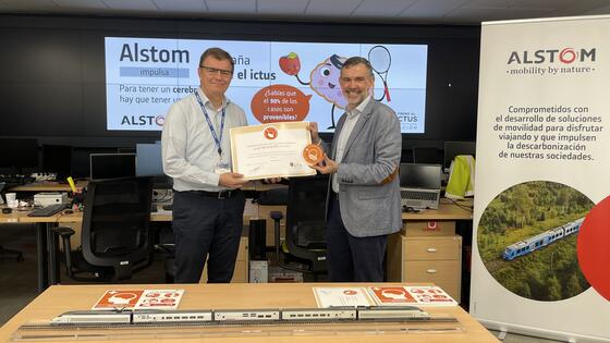 La Fundación Freno al Ictus ha otorgado la certificación de "Espacio Cerebroprotegido" a la unidad de mantenimiento de Alstom España. Esta distinción avala que Alstom, líder mundial en movilidad sostenible e inteligente, cuenta en sus centros de trabajo de mantenimiento en Madrid y Barcelona con un significativo número de empleados capacitados para responder de manera eficaz en caso de que alguna persona sufra un ictus en sus instalaciones.