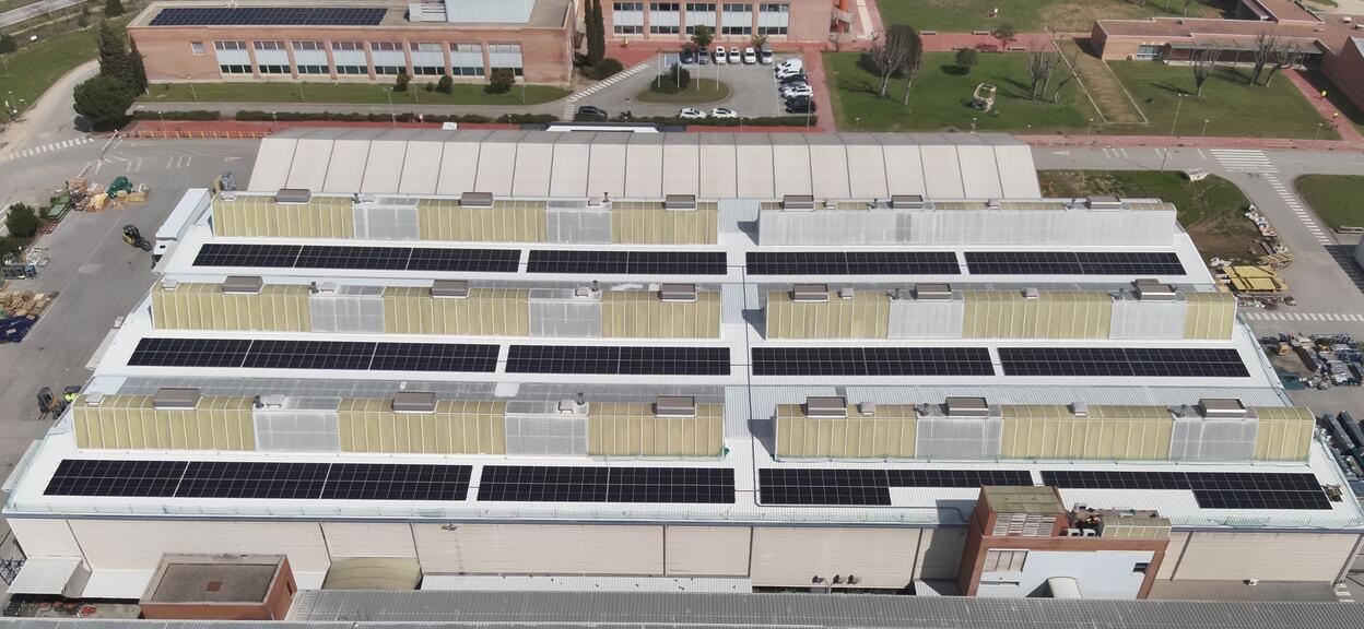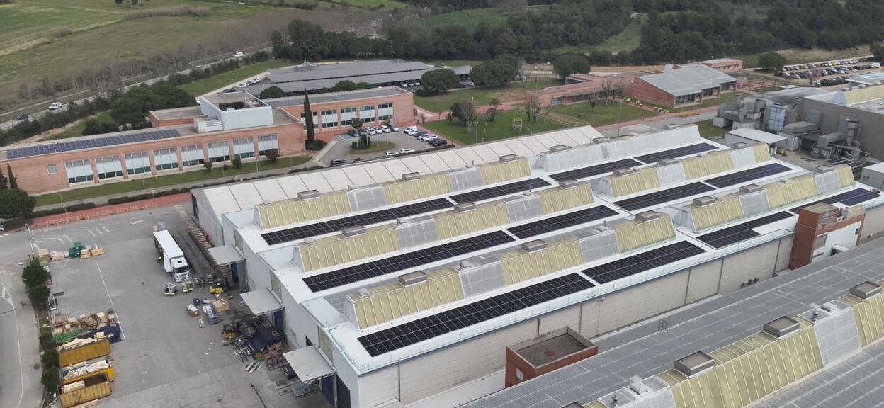 El proyecto de energía solar en el centro industrial de Santa Perpètua (Barcelona) contará con una potencia pico instalada de 2.041 kWp, con una capacidad de generación energética equivalente al 26,5% del consumo de la fábrica.