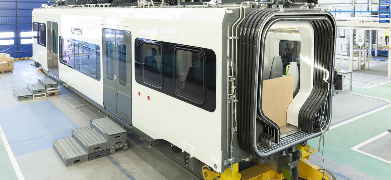 Durante la visita a las instalaciones de Alstom, la comitiva ha podido ver cómo avanza la construcción de los trenes que conectarán con el Aeropuerto de Barcelona-El Prat. Concretamente, han visitado los dos coches del primer tren que se encuentran en un estado de fabricación más avanzado: un vehículo intermedio y un vehículo con cabina de conducción.
