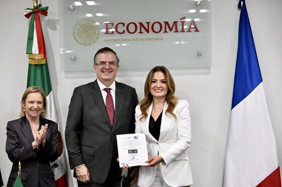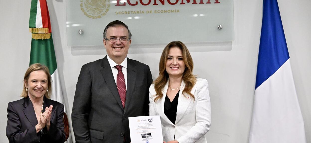 From left to right: Delphine Borione, French Ambassador in Mexico, Marcelo Ebrard, Mexican Secretary of Economy, and Maite Ramos, Managing Director of Alstom Mexico and North LAM (© Secretary of Economy)