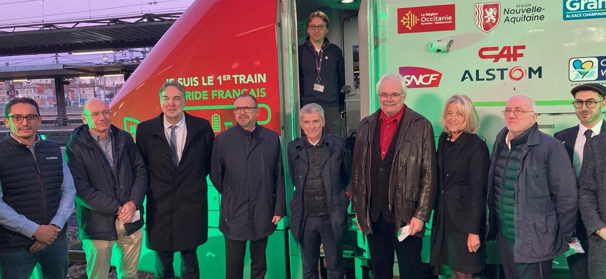 Jean-Aimé Mougenot, Directeur délégué TER SNCF Voyageurs, Jean-Luc Gibelin, Vice-président chargé des Mobilités pour tous et Infrastructures de transports de la Région Occitanie / Pyrénées-Méditerranée, Benoit Carniel, Directeur du site Alstom de Tarbes, Alain Picard, Directeur Général France de CAF et Gaël Barbier, Directeur régional SNCF Voyageurs Occitanie ont exprimé leur satisfaction de voir ce projet d’avenir se concrétiser. Le train hybride va être expérimenté pendant une année en service commercial sur plusieurs lignes des quatre Régions partenaires du projet.