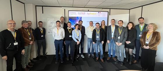 À Tarbes, les représentants d’Alstom, de CARE et de Bpifrance entourent les représentants des PME situées en Occitanie, qui font partie de la 10e « grappe » nationale du programme CARE (Copyright: Alstom/Mathilde Laborderie)