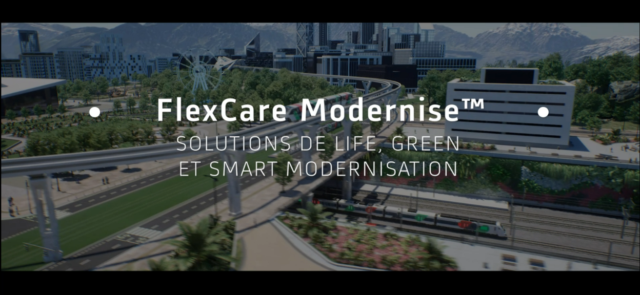 Alstom est le leader de la modernisation ferroviaire et un partenaire privilégié pour améliorer et prolonger la durée de vie du matériel roulant. FlexCare Modernise™ propose un portefeuille complet de solutions de modernisation Life, Smart et Green pour répondre à un large éventail de besoins clients tel que l’allongement de la durée de vie des actifs, la réduction des coûts de fonctionnement, l’amélioration du confort ou encore une réduction de l’empreinte environnementale, tout en préservant les performances des trains.