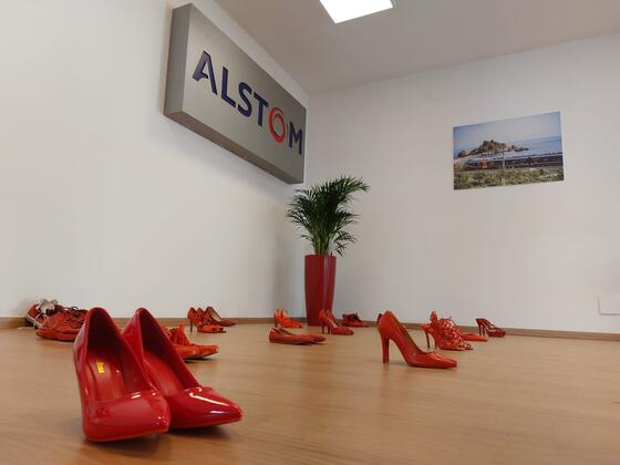 Alstom sarà la prima azienda al mondo a replicare questo evento e ad ospitarlo all’interno dei propri spazi produttivi. Un’installazione semplice ma piena di significato, composta da scarpe di tutti i tipi e genere di colore rosso o dipinte di rosso portate dai dipendenti nel proprio stabilimento per dire stop alla violenza di genere.