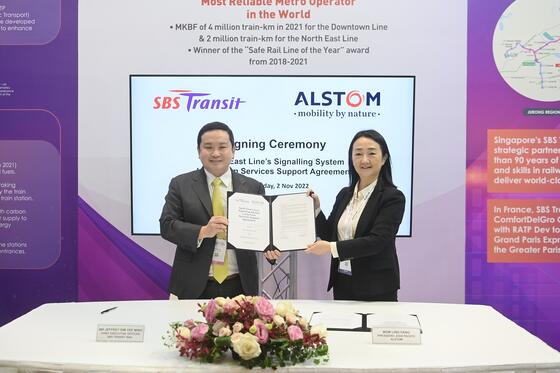 The agreement was signed by Alstom Asia Pacific President, Ling Fang, and CEO, SBS Transit Rail, Jeffrey Sim, during the LTA-UITP Singapore International Transport Congress and Exhibition 2022.