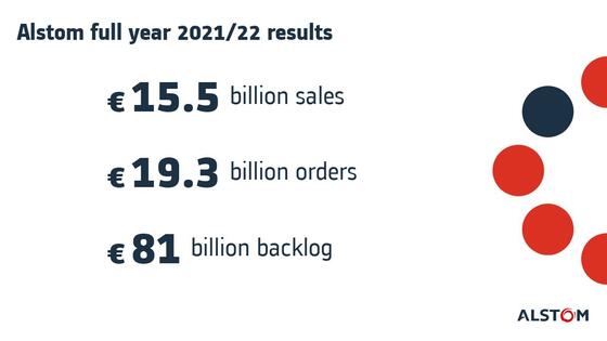 11 May 2022 – Between 1 April 2021 and 31 March 2022, Alstom booked €19.3 billion of orders. Sales reached €15.5 billion. The book-to-bill ratio is strong at 1.25.