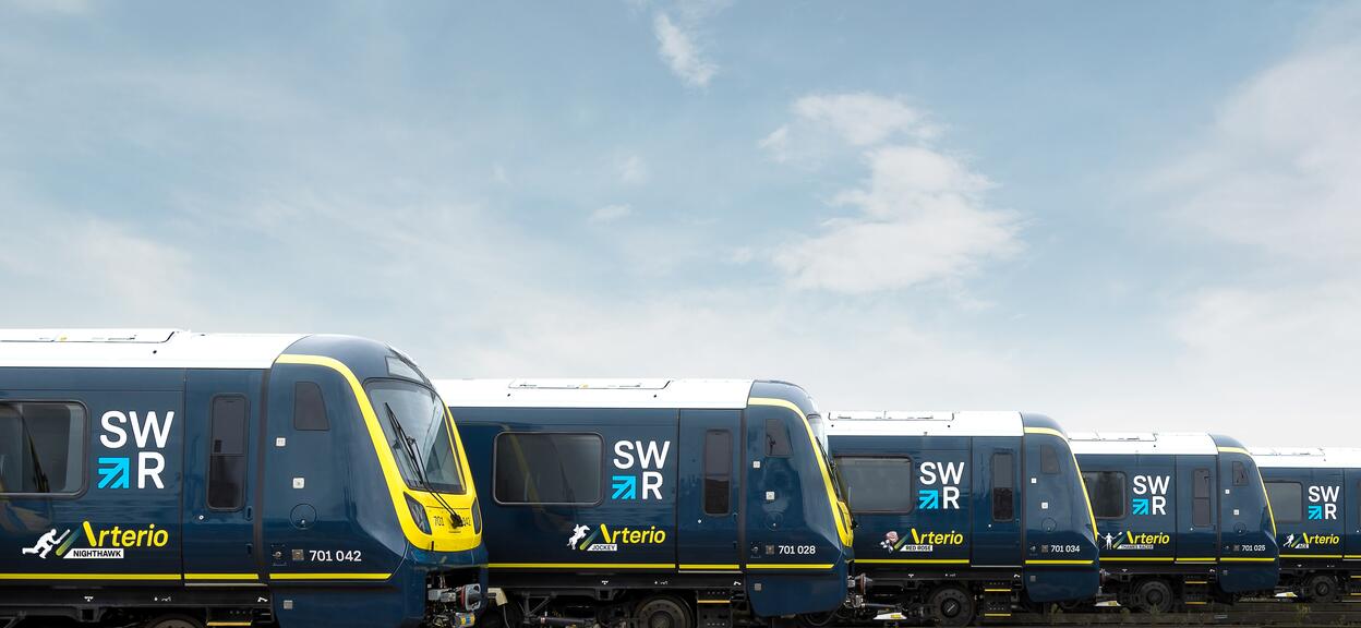 Designed, engineered, manufactured and tested at Alstom’s Litchurch Lane Works in Derby, SWR’s Class 701 Aventra trains are known as Arterios by the operator, reflecting their routes along the arteries of their suburban network to the capital.