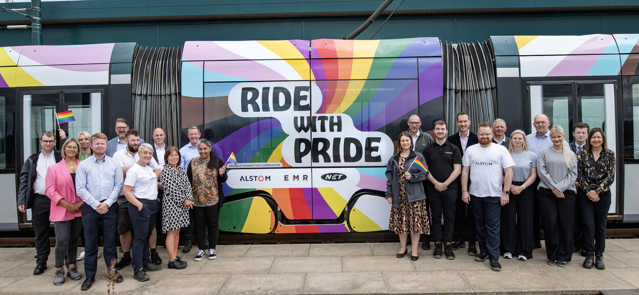 8 July 2024 – Alstom, global leader in smart and sustainable mobility, has teamed up with rail operator East Midlands Railway (EMR) and tramway Nottingham Express Transit (NET) to unveil a special tram livery to celebrate Pride and the LGBTQ+ community.