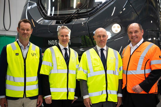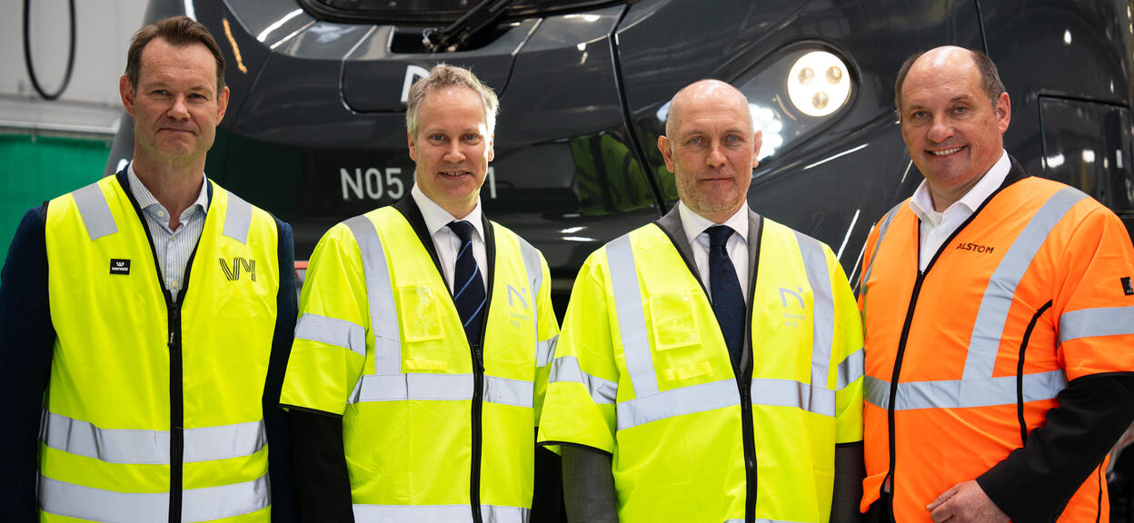 Presentation of the first Coradia Stream train for Norske tog - from left to right, Erik Røhne from VY, Norwegian Minister of Transport Jon-Ivar Nygård, Norske tog CEO, Øystein Risan, Jörg Nikutta, Alstom MD for Denmark, Norway and Iceland