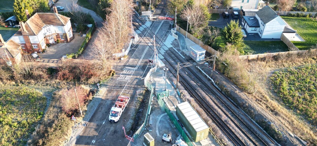 Upgrade of Meldreth Road level crossing from Automatic Half Barrier (AHB) to a full manually-controlled barrier MCB-CCTV system, improving safety for all pedestrian and road users