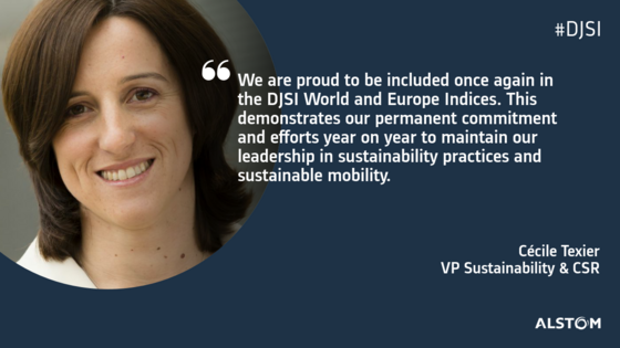 "Temos orgulho de ser incluídos mais uma vez nos índices DJSI World e Europe. Isso demonstra nosso compromisso e esforços permanentes, ano após ano, para manter nossa liderança em práticas de sustentabilidade e mobilidade sustentável," afirmou Cécile Texier, Vice-Presidente de Sustentabilidade e Responsabilidade Social corporativa da Alstom.