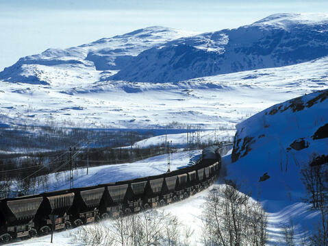 Sweden's Iron Ore Line connects to Norway's Ofoten Line, leading to Narvik port. The railway outside Narvik is Western Europe's northernmost at 68.452°N.